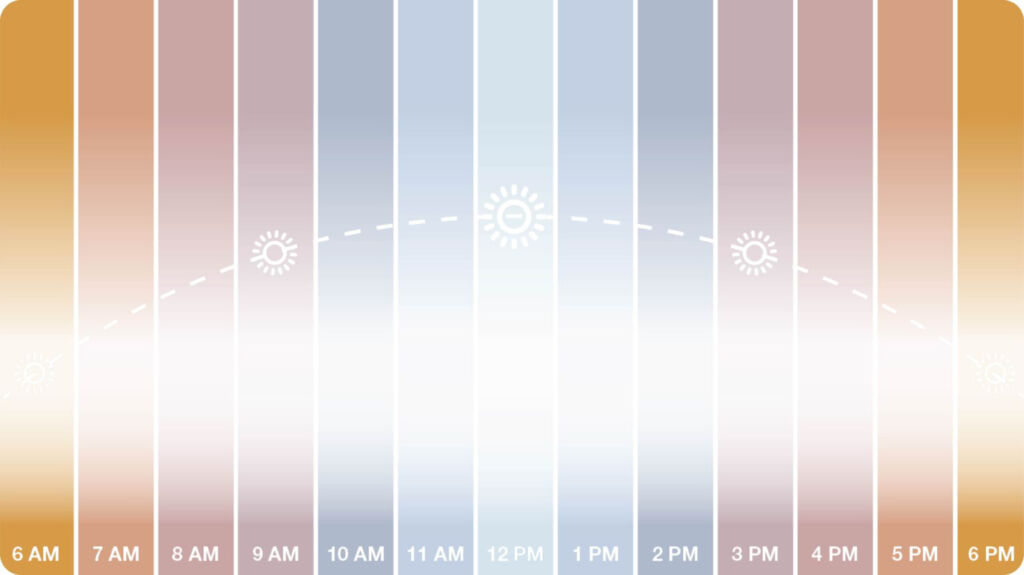 - Midday: strongest intensity